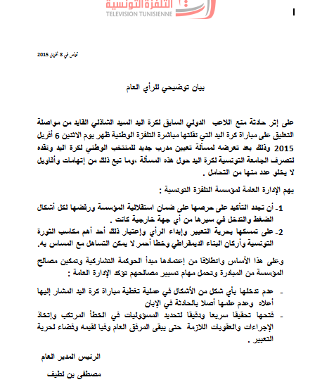 La direction a aussi rappelé qu’elle tient à la liberté d’expression qui demeure l’un des plus grands acquis de la révolution. La direction a, d’autre part, indiqué que dans le cadre de l’autonomie de la gestion et de l’indépendance de la rédaction par rapport à l’administration, elle n’intervient pas dans le travail des journalistes, ajoutant qu’elle n’était même pas au courant de l’affaire.