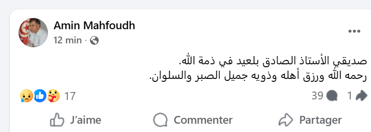 La disparition de Sadok Belaïd marque la perte d’une personnalité intellectuelle et juridique influente qui a largement contribué aux débats constitutionnels et politiques en Tunisie au cours des dernières années.