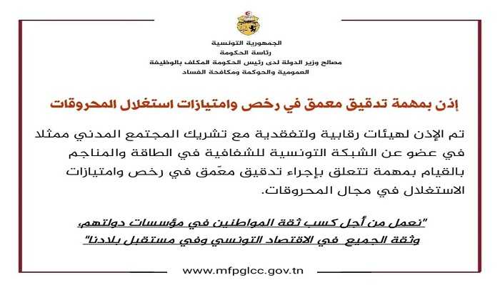 Cette mission a été confiée à des commissions de contrôle et d'inspection, en y associant la société civile représentée par un membre du réseau tunisien de la transparence dans l’énergie et les mines.