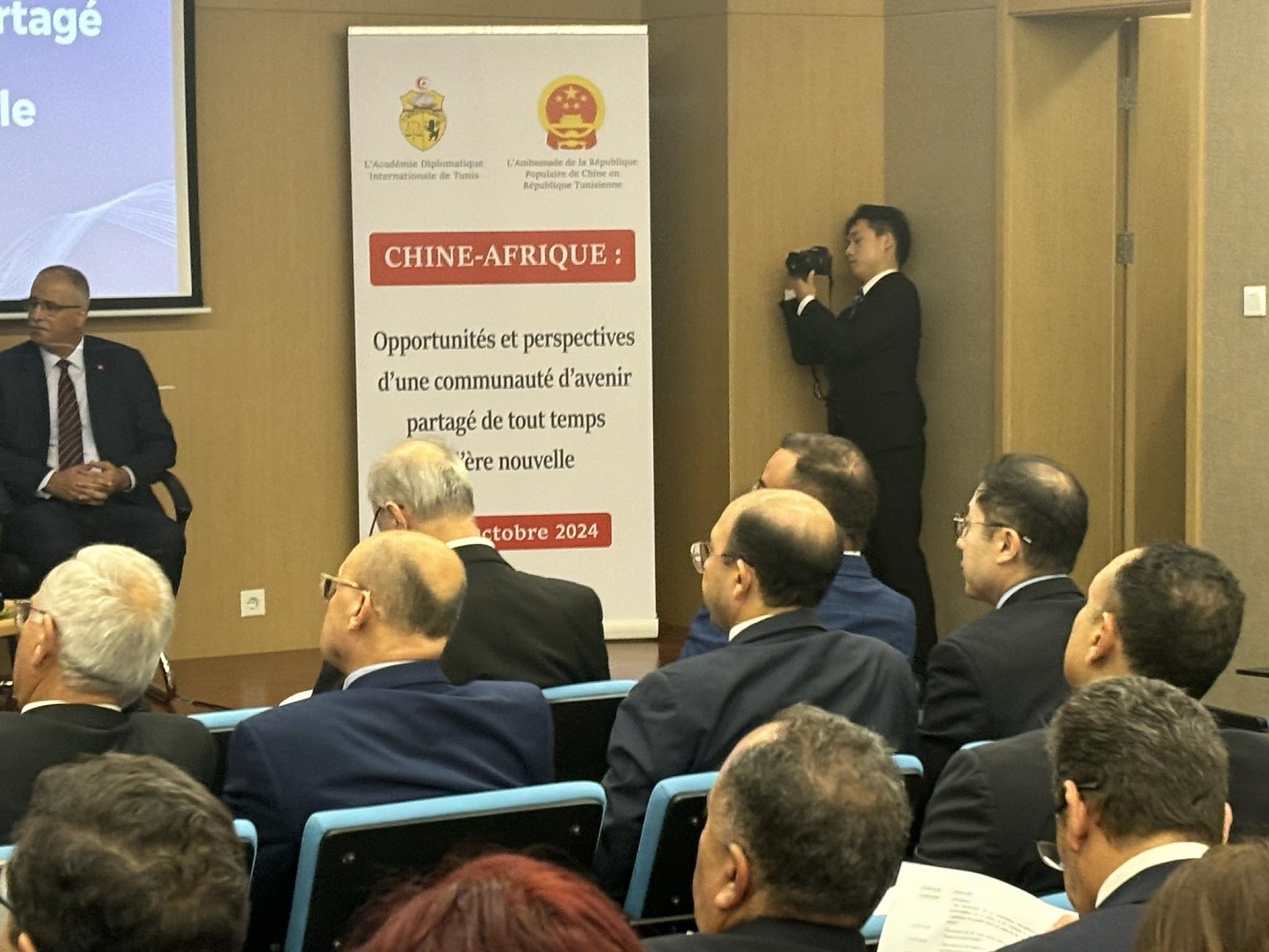Le colloque Chine-Afrique sur les "opportunités et perspectives d'une communauté d'avenir partagé de tout temps à l'ère nouvelle" a été organisé ce mercredi 9 octobre 2024 à l'Académie diplomatique internationale de Tunis, en présence de l'Ambassadeur de Chine en Tunisie et du Sécretaire d'Etat tunisien auprès du ministère des Affaires étrangères, de la Migration et des Tunisiens de l'étranger.