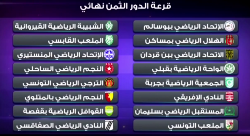 Coupe de Tunisie: Le tirage complet des huitièmes de finale
