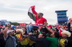 Un supporter égyptien handicapé porté sur les épaules dans une Fan Zone