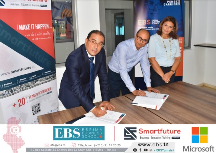 ESPIMA BUSINESS SCHOOL (EBS) et SMARTFUTURE ont signé, le 29 septembre 2020, une convention pour la mise en place des solutions académiques de Microsoft.