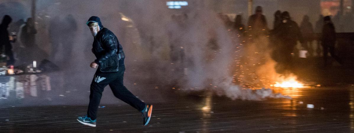 A plusieurs reprises dans la soirée, quelques jeunes, tournant autour de la place, ont jeté des bouteilles en verre sur les forces de l'ordre. Gendarmes et CRS bloquaient les issues de la place. "Dispersez-vous", a sommé un policier muni d'un porte-voix, place de la République. Puis les forces de l'ordre ont utilisé des grenades lacrymogènes et assourdissantes pour déloger les manifestants, selon des journalistes.