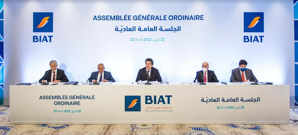 L’assemblée générale ordinaire de la BIAT s’est tenue le 22 avril 2022 exclusivement à distance, en présence des membres du bureau de l’assemblée et du Directeur Général de la banque.Les actionnaires préalablement inscrits à une plateforme en ligne ont pu participer aux travaux et voter par correspondance.