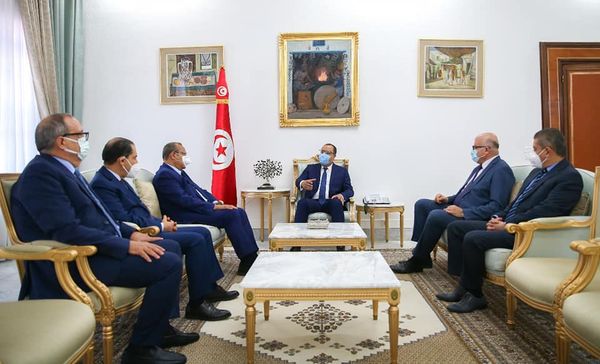 Lors d’une réunion qui a eu lieu aujourd’hui, lundi 19 juillet 2021, au Palais du gouvernement à La Kasbah, le Chef du gouvernement, Hichem Mechichi s’est entretenu avec le président de l’UTICA, Samir Majoul, le président de la Chambre Nationale des Propriétaires de Cliniques Privées, Boubaker Zakhama, le Président de la Fédération de la Santé de l’UTICA, Tarek Ennaifer, le Ministre de la Santé Faouzi Mehdi, et du conseiller du Chef du Gouvernement Oussema Kheriji.
