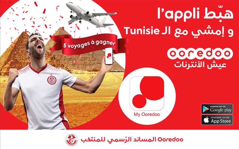 En effet, l’opérateur offre aux supporters des aigles de Carthage 5 voyages pour assister aux matchs de la Tunisie dans la Coupe d'Afrique des Nations 2019 qui se déroulera du 21 juin au 19 juillet en Égypte. Pour participer, rien de plus simple. Tout abonné qui télécharge l’application My Ooredoo durant la période de jeu (06-19 mai) sera automatiquement éligible au tirage au sort et pourra de ce fait gagner un voyage en Égypte.