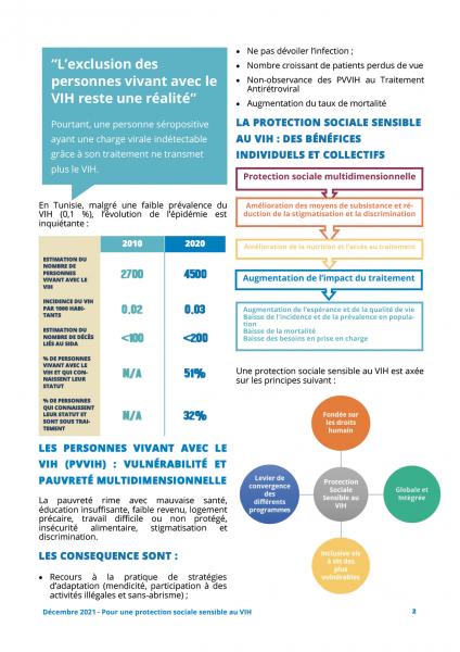 En Tunisie, et pour la première fois dans la région MENA, une évaluation de la sécurité alimentaire et nutritionnelle des PVVIH a eu lieu. Commencée en 2020 et publié en Aout 2021, cette évaluation montre que 39% des PVVIH sont en insécurité alimentaire. Parmi les PVVIH enquêtés plusieurs d’entre eux ont eu recours à la pratique de stratégies d’adaptation d’urgence telle que la mendicité, le vol, la prostitution ou le sans-abrisme. Par peur de la divulgation de leur statut de séropositif, 32% d’entre eux ont une réticence à accéder aux soins. Cela favorise l’augmentation du nombre de PVVIH qui sont perdus de vue par le corps médical.