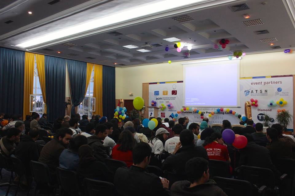 La troisième édition du concours national de programmation ACM TCPC 2015 a eu lieu les 18 et 19 Mars 2015 à l’espace de conférences du pôle Elgazala, et ce, sous l’égide des comités arabe et international de l’ACM ICPC. Pour plus d’informations sur cet événement cliquez ici.