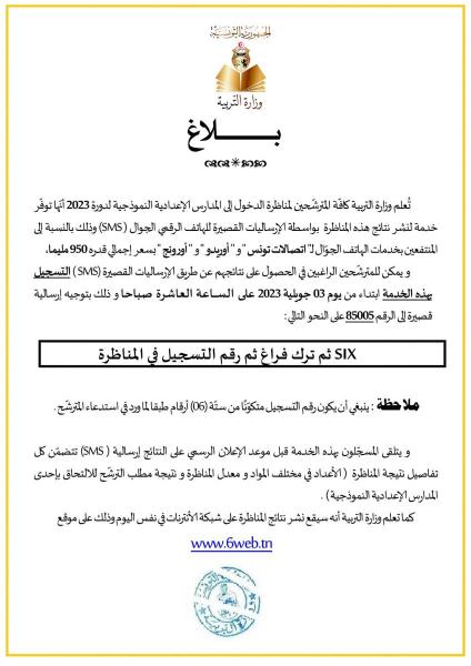 Résultats du concours de la 6ème: Inscription au service SMS à partir du 3 juillet