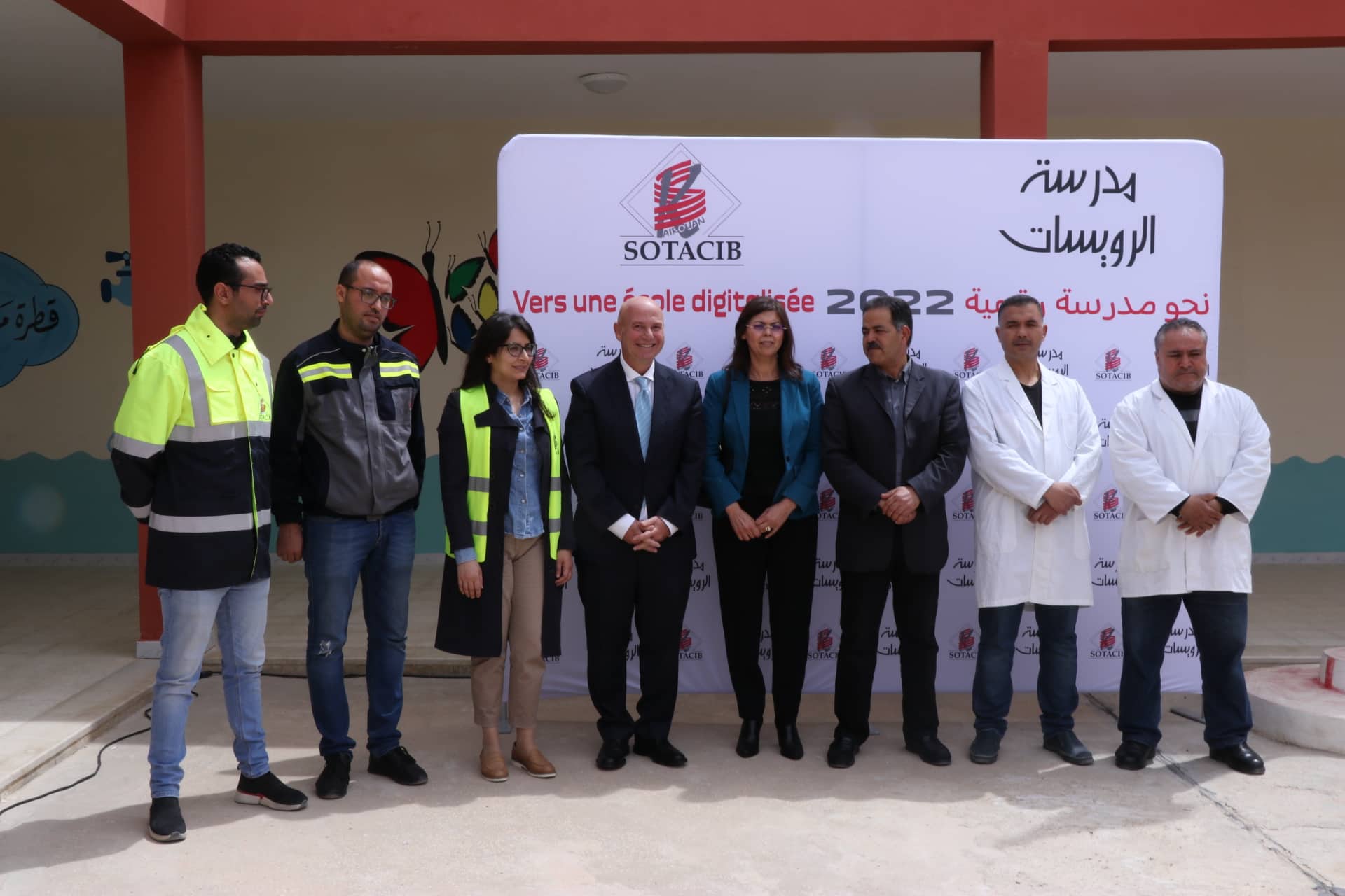 Dans le cadre de son engagement constant dans les actions sociales et dans le souci de contribuer à l’amélioration des conditions de vie des élèves dans les établissements scolaires de la région de Rouisset, la cimenterie Sotacib Kairouan lance le 20 avril 2022 l'action "Vers une école digitalisée Rouisset 2022".